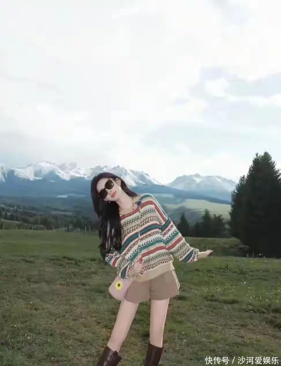 这套造型的核心,在于“混搭”的巧妙与和谐。孟子义选择了一件经典的条纹毛衣,蓝白相间的色调清新又减龄,自带一种法式的休闲与随性。然而,她并没有遵循常规搭配牛仔裤的思路,而是大胆地选择了一条短裤,瞬间打破了毛衣可能带来的沉闷感,注入了满满的活力与俏皮。这“上长下短”的组合,不仅优化了身材比例,更在视觉上营造出一种轻盈的“下半身失踪”效果,让双腿显得格外修长。